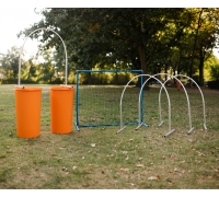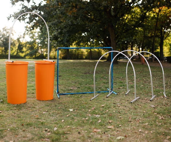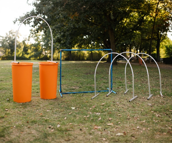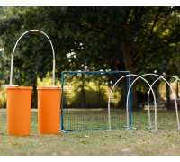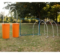 De hekjes kunnen ook gebruikt worden als sturing bij het aanleren om door een Hooper heen te lopen of juist als begrenzing om een wat moeilijkere bocht simpeler te maken voor de hond.