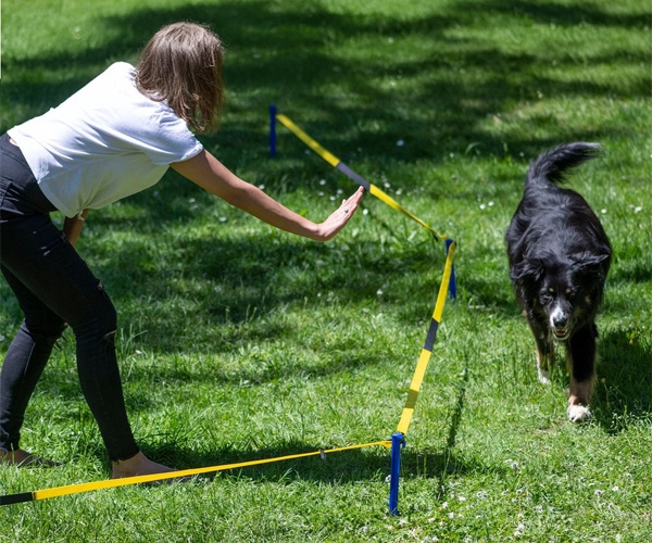 De set is eenvoudig op te zetten en aan te passen in grootte, zodat je de training kunt afstemmen op het niveau en de grootte van je hond en ruimte. Perfect voor gebruik in de tuin, op het trainingsveld of tijdens een wandeling.