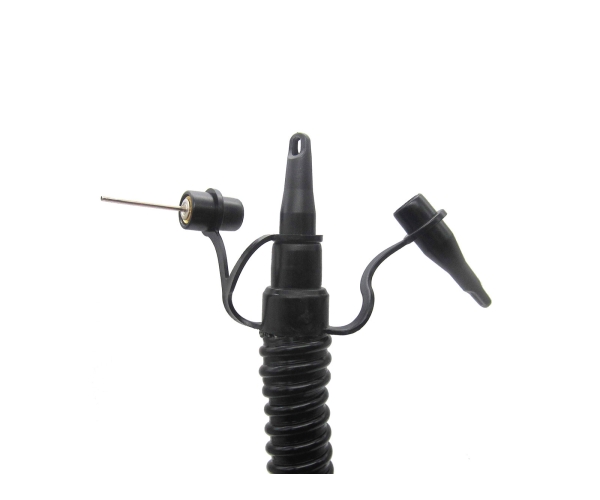 De pomp wordt geleverd met een flexibele accordeonslang en drie verschillende mondstukken. Dankzij de verschillende opzetstukken is de pomp geschikt voor uiteenlopende ventielen en toepassingen.